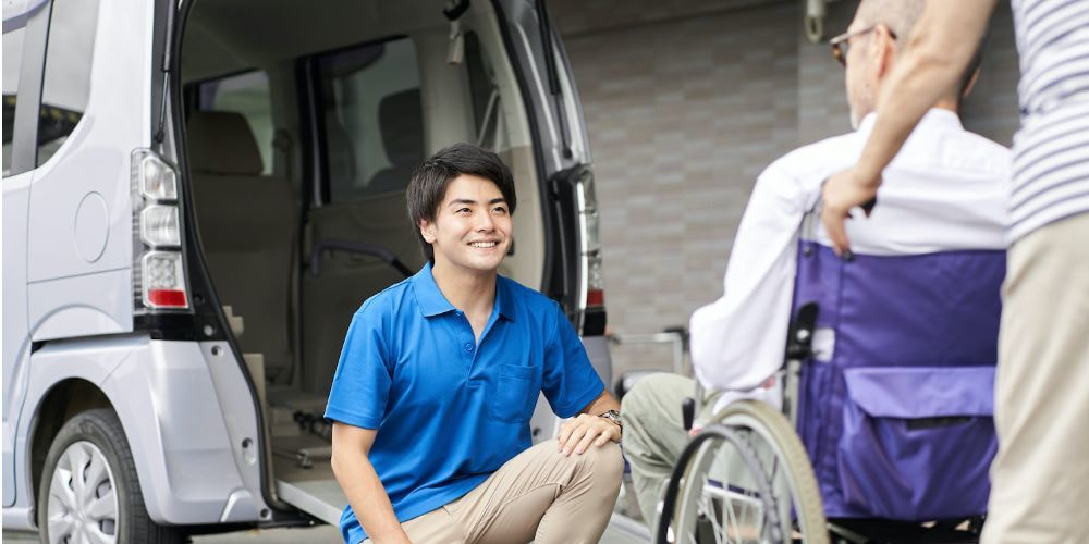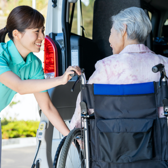 デイサービス(通所介護)では、利用者さまが安心して通えるよう、自宅からありのみデイサービスへ移動する際は、送迎車で送り迎えを行います。