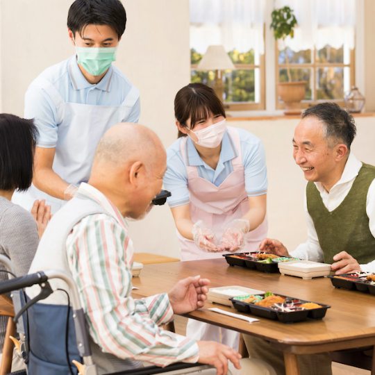 デイサービスに滞在中、利用者さまに配慮した「きざみ食」や「ミキサー食」など、利用者さまの状態に合わせた昼食やおやつを楽しんでいただきます。