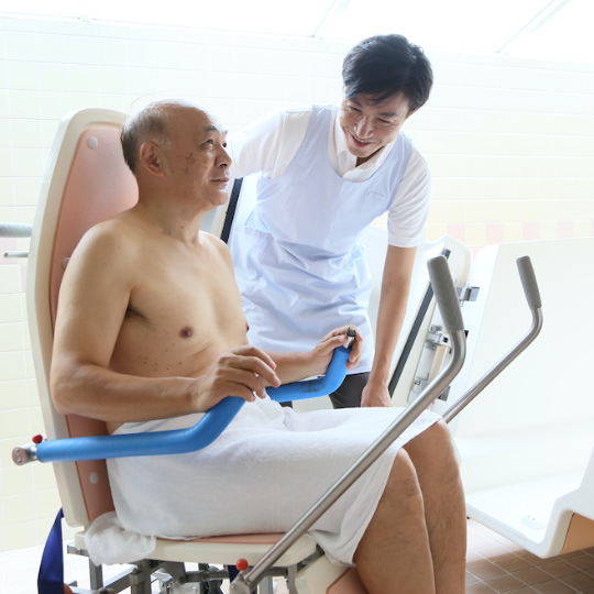 自宅での入浴が困難な方でも安心して利用できるよう、座位が保てる方には中間浴、寝たきりの方には特殊浴を用意しており快適に入浴していただけます。