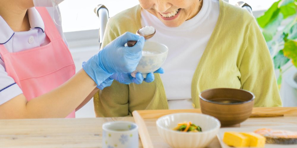 デイサービスに滞在中、利用者さまに配慮した「きざみ食」や「ミキサー食」など、利用者さまの状態に合わせた昼食やおやつを楽しんでいただきます。